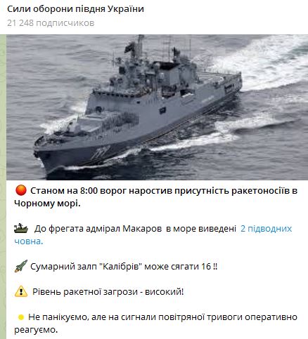 11.08 В направлении Одессы летит ракета, сообщают Воздушные силы.