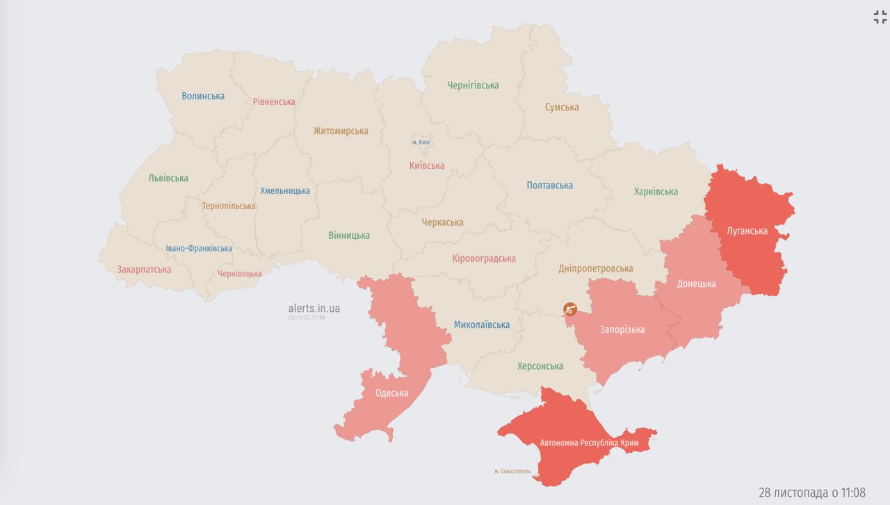 В большинстве регионов – "Шахеды" или их угроза. На данный момент несколько групп летят через Полтавскую область на северо-запад, то есть на Черниговскую или Киевскую область.