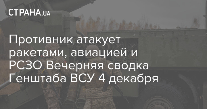 Генштаб ВСУ опубликовал оперативную информацию по состоянию на 18:00 4 декабря.