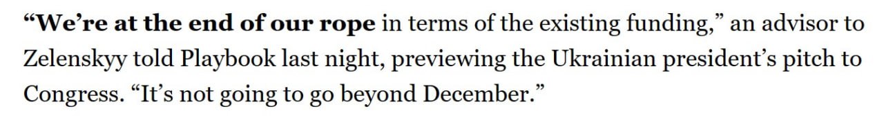 "Мы на исходе с точки зрения существующего финансирования. Это не продлится дольше декабря", - заявил советник президента.