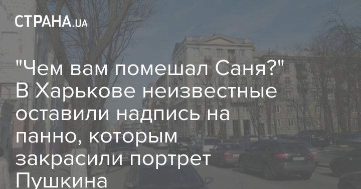 В Харькове неизвестные повредили панно, которыми закрасили портрет русского поэта Александра Пушкина. Вместо Пушкина нарисовали портреты украинских литераторов, в частности, Леси Украинки, Ивана Франко и Григория Сковороды.