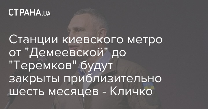 Станции киевского метро от "Демеевской" до "Теремков" будут закрыты приблизительно шесть месяцев - Кличко