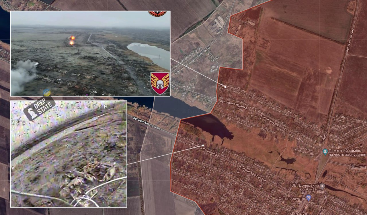 Касаемо Марьинки - там продвижение зафиксировано в северной части города, где остаются позиции ВСУ. Такой вывод паблик Deep State делает по видео, которое опубликовали украинские военные. Там зафиксирован подрыв российской техники на краю улицы Леси Украинки.