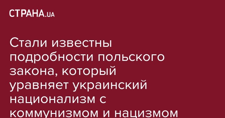 Стали известны подробности польского закона о запрете пропаганды коммунизма, который может приравнять украинский национализм к коммунизму и нацизму. Соответствующие изменения в законопроект опубликованы на сайте Сейма Польши.
