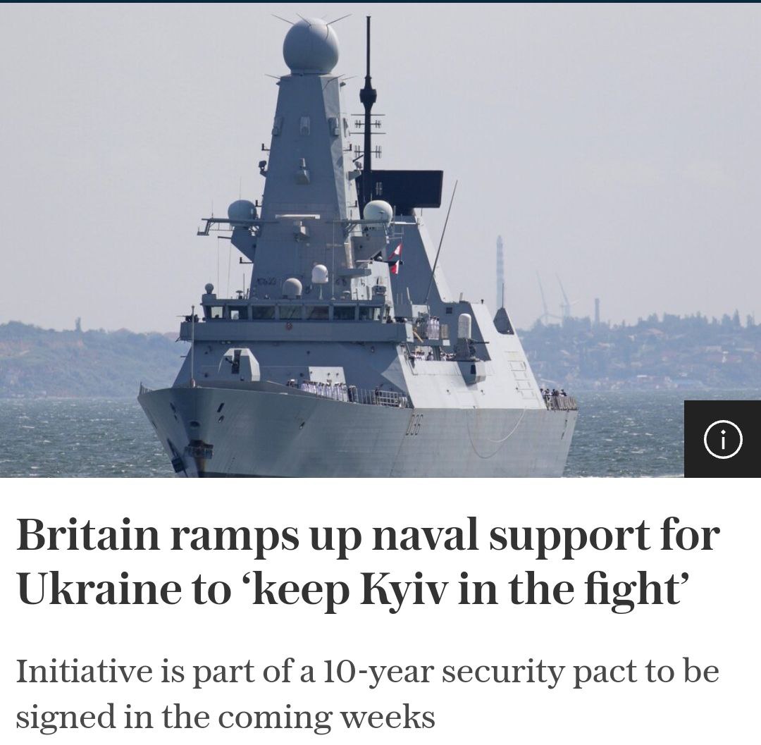 По этому документу, Лондон обязуется "поддерживать Киев в борьбе" путем предоставления военной поддержки, ориентированной на военно-морские силы.