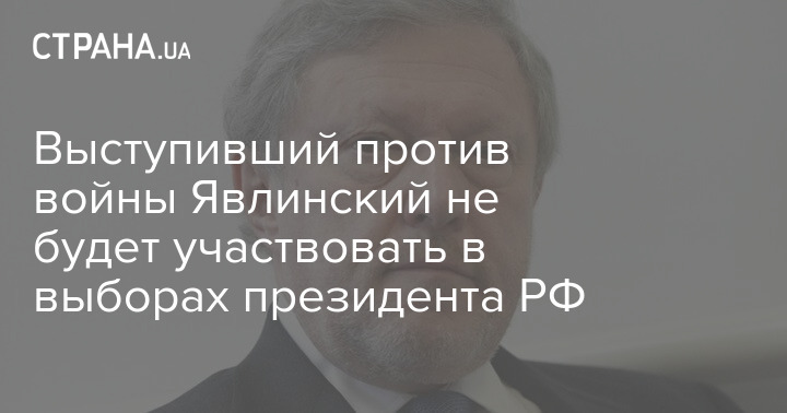 Выступивший против войны в Украине лидер российской партии "Яблоко" Григорий Явлинский не будет участвовать в выборах президента РФ в 2024 году.
