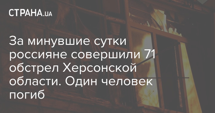 За минувшие сутки россияне совершили 71 обстрел Херсонской области. Один человек погиб