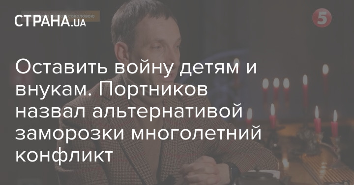 "Мы много говорим, что мы не хотим замороженный конфликт, потому что не хотим оставлять войну своим детям и внукам. Это прекрасная фраза, но выбор не такой. Выбор может быть другой: или замороженный конфликт, или мы просто передаем эту войну детям и внукам - не потому, что она разморозится, а потому, что она будет продолжаться. Потому что вы умрете, а потом ваши дети и внуки, если они вдруг от кого-то родятся, они тоже будут воевать", - заявил Портников.