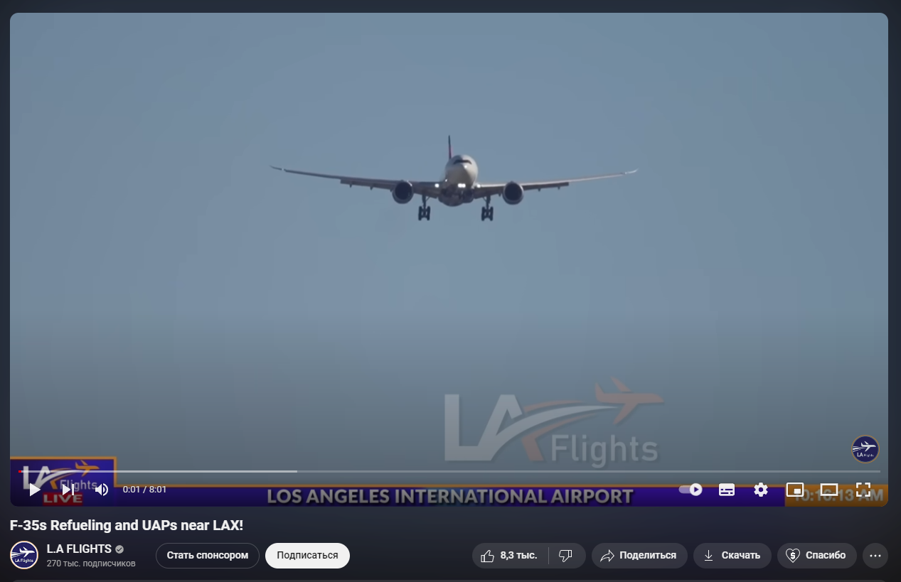 Ролик был записан две недели назад во время пролета лайнера с президентом Байденом над Лос-Анджелесом.