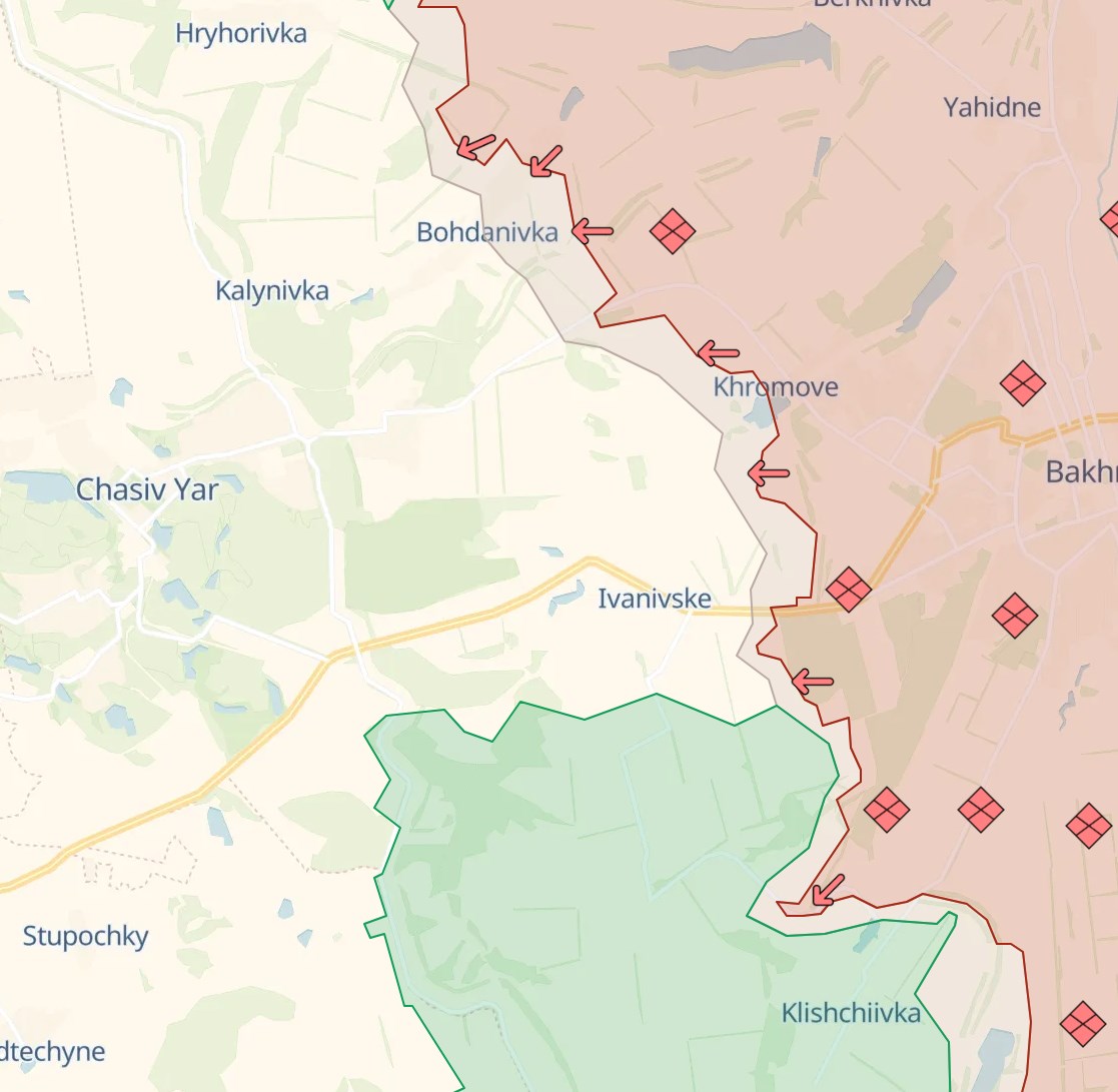 Украинские паблики сообщают, что россияне захватили посадку и кладбище под Богдановкой, также им удалось продвинуться восточнее Ивановского.