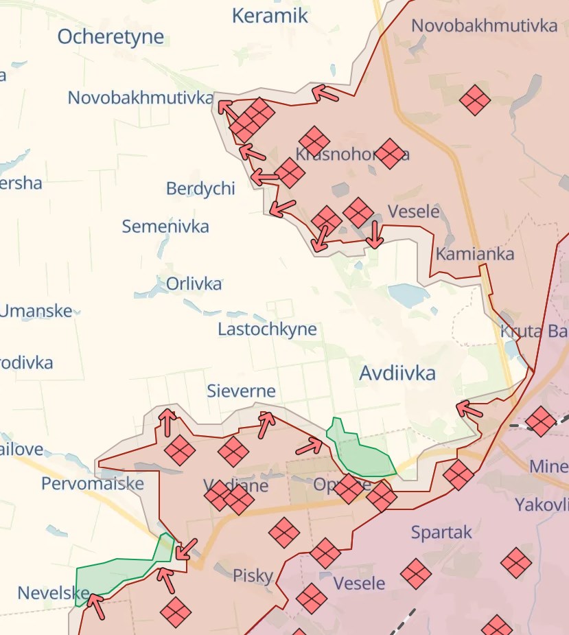 При этом пишут о том, что российские войска продвигаются на северном и южном фланге Авдеевки.