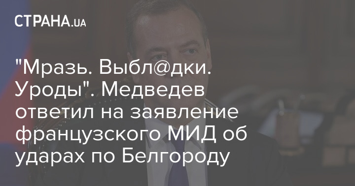 Заместитель главы Совета безопасности РФ Дмитрий Медведев прокомментировал заявление французского МИД о том, что удары по Белгороду – это законная самооборона Украины.