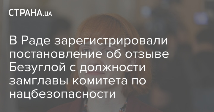 В Раде зарегистрировали постановление об отзыве Безуглой с должности замглавы комитета по нацбезопасности