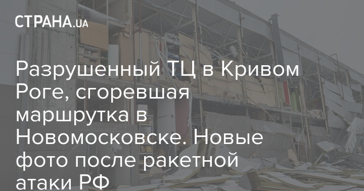 Разрушенный ТЦ в Кривом Роге, сгоревшая маршрутка в Новомосковске. Новые фото после ракетной атаки РФ