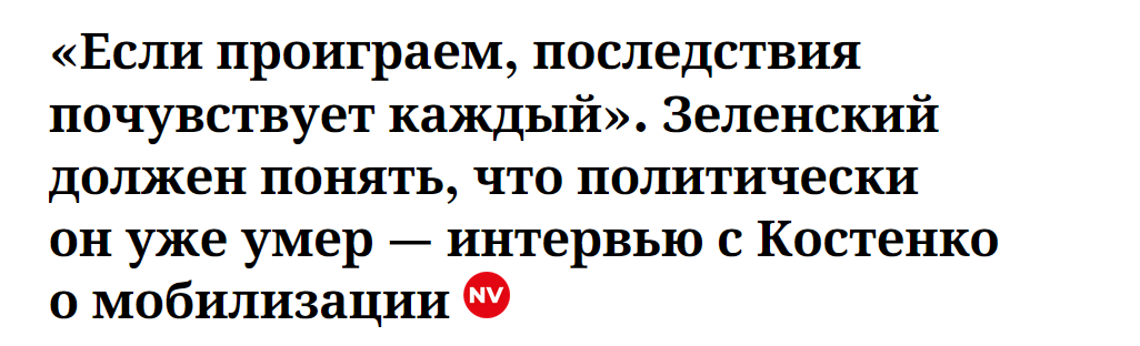 "Я считаю, что сейчас президент Зеленский должен понять для себя, что он уже никогда больше не будет президентом, что это только один срок, который у него сейчас есть. Он должен понять, что политически он уже умер. И сейчас он должен принимать не такие решения, которые ему будут давать возможность переизбраться на следующих выборах или которые будут поддерживать его рейтинги, а те, которые имеют возможность сохранить это государство", - заявил Костенко.
