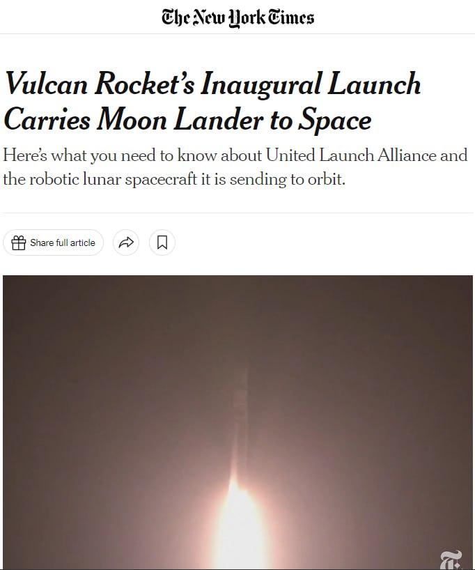 Ракета Vulcan Centaur с останками создателей сериала "Star Trek" и образцами ДНК американских президентов на борту стартовала к Луне.