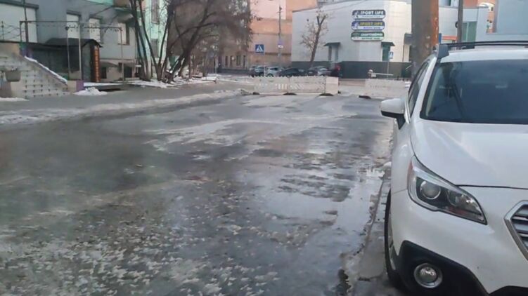 Горячая вода быстро замерзла, и дорога превратилась в каток. Движение там перекрыто.