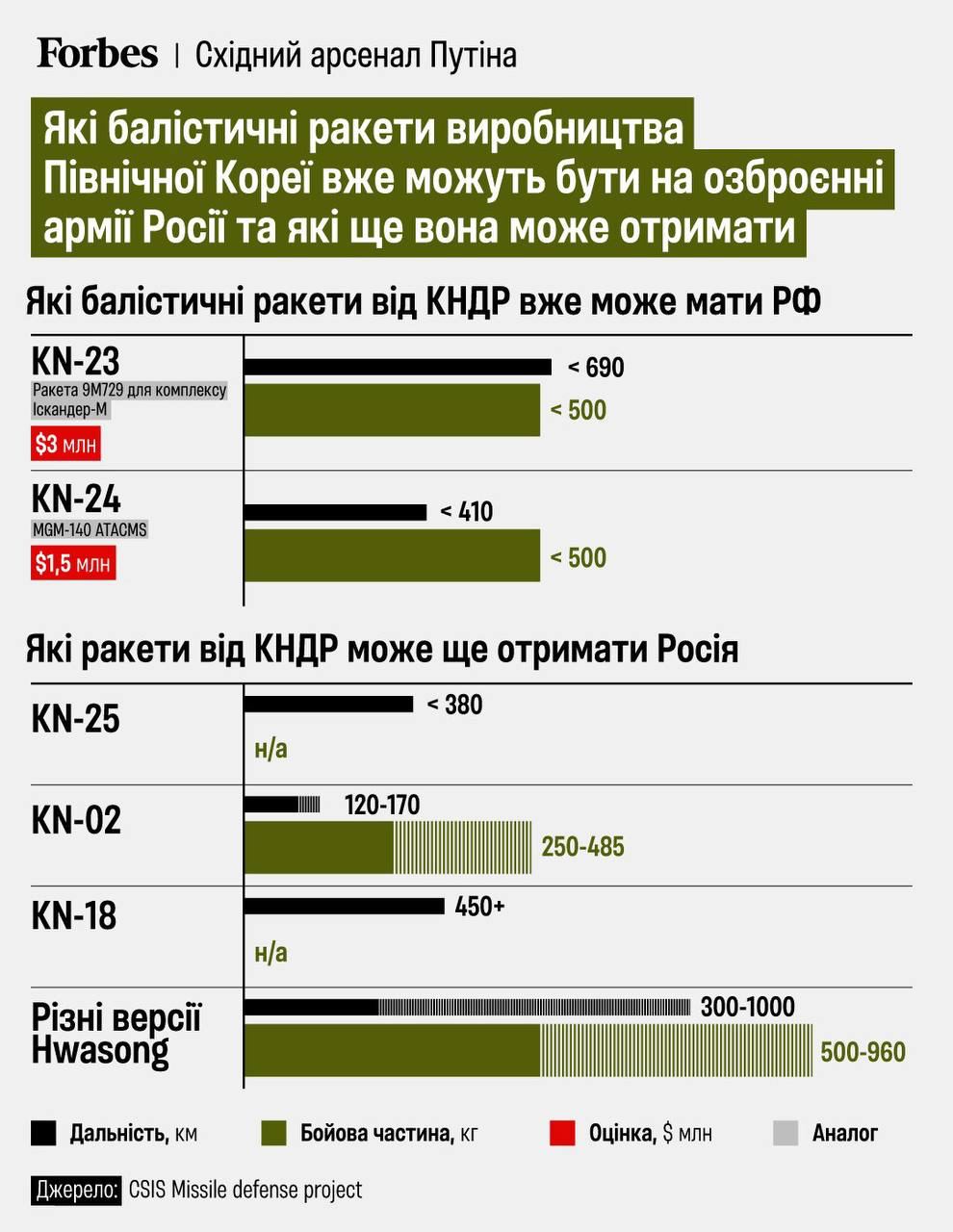 СМИ публикуют инфографику с характеристиками северокорейских ракет, которые могла получить РФ.