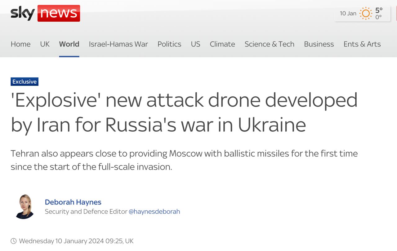 14.05 Иран разработал новый ударный дрон для России и близок к передаче баллистических ракет, пишет Sky News со ссылкой на источники.