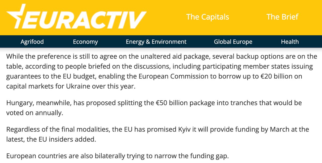 14.50 Евросоюз пообещал Украине, что в любом случае предоставит финансирование не позднее марта, сообщает Euractiv со ссылкой на источники.