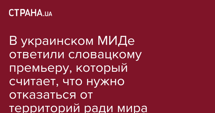 В украинском МИДе ответили словацкому премьеру, который считает, что нужно отказаться от территорий ради мира