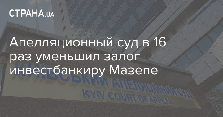Киевский апелляционный суд уменьшил размер залога бизнесмену Игорю Мазепе в 16 раз - с 349 миллионов 700 тысяч гривен до 21 миллиона гривен.