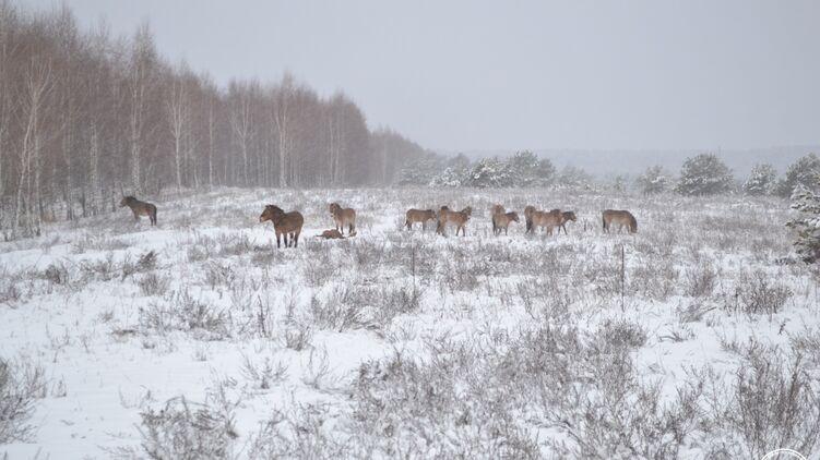 Чернобыльский заповедник показал фото лошадей Пржевальского в снегу зоны отчуждения
