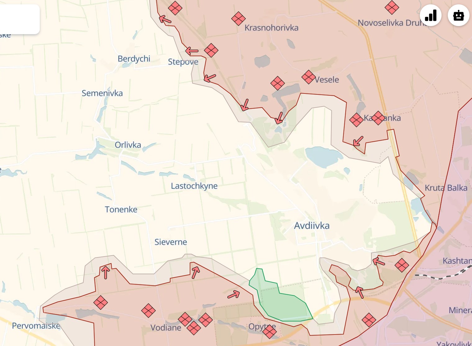 Накануне говорилось, что РФ подошла там к стратегически важному району на юге от Авдеевки. Украинский военный паблик DeepState подтвердил эту информацию. Телеграм-канал, как ранее и российские паблики, сообщил, что проникновение произошло через подземные коммуникации.