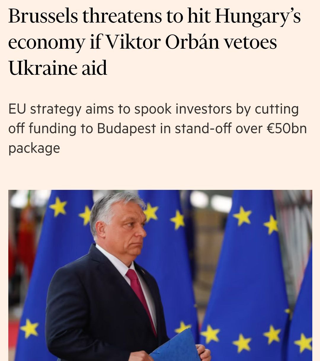 Евросоюз готовит удар по экономике Венгрии, если та снова заблокирует помощь Украине на саммите 1 февраля.