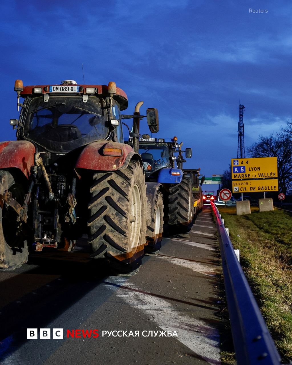 Французские фермеры, как и обещали, заблокировали дороги в Париже и в других городах тракторами в знак протеста против падения доходов из-за инфляции, увеличения импорта сельхозпродукции и планов ЕС, которые, в частности, предполагают сокращение выбросов и использования удобрений.
