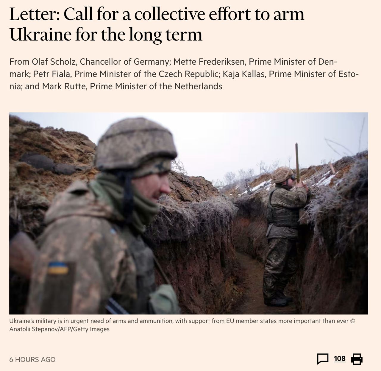 "Украина не имеет достаточного количества артиллерийских боеприпасов. А обязательства по военной поддержке рискуют не соответствовать потребностям Украины. В начале прошлого года ЕС поставил перед собой амбициозную цель - поставить Украине 1 млн артиллерийских снарядов до конца марта 2024 года. Суровая правда: мы не достигли этой цели. Но мы не можем просто так отказаться от своего обещания", - пишут лидеры.