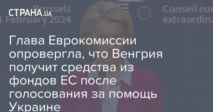 Глава Еврокомиссии опровергла, что Венгрия получит средства из фондов ЕС после голосования за помощь Украине
