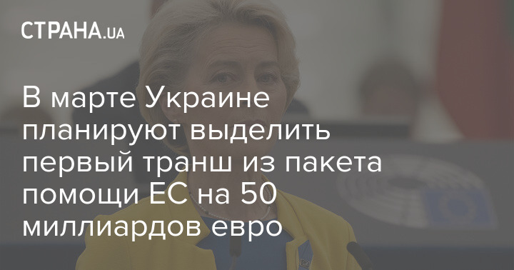 ЕС планирует выделить Украине первый транш из пакета помощи на 50 млрд евро в марте, сообщила глава Еврокомиссии Урсула фон дер Ляйен.