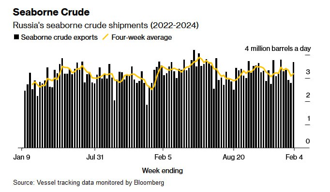 В период с 22 по 28 января морской экспорт российской нефти упал на 250 тысяч баррелей в стуки из-за сильных морозов, штормов в Приморском крае и ремонтных работ в терминале Усть-Луга.