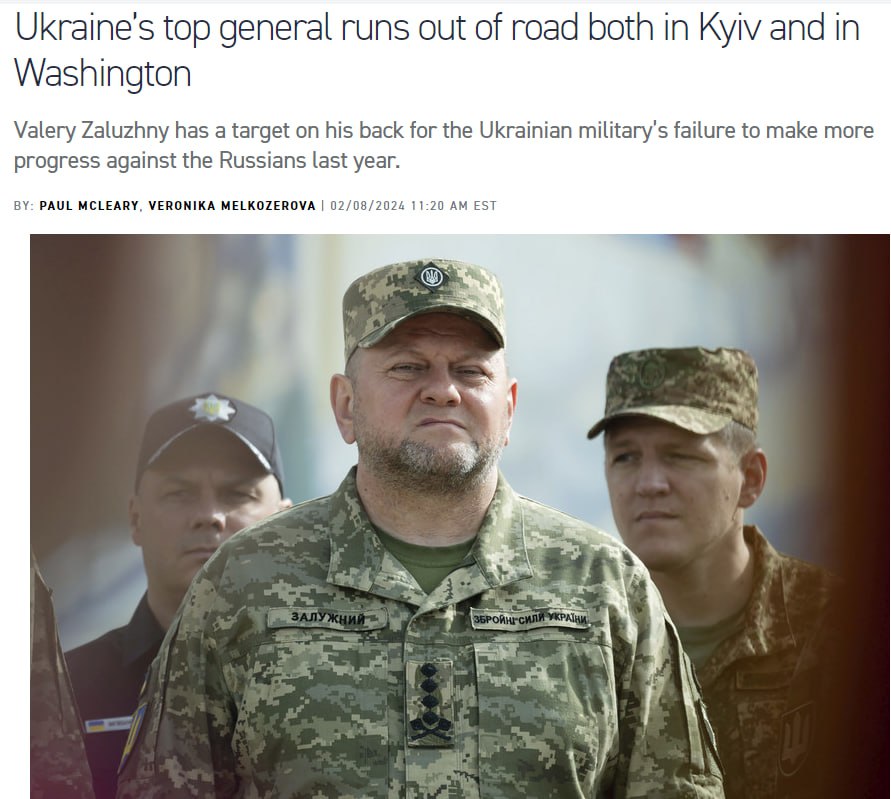 Politico сообщает, что Зеленский проинформировал Вашингтон о решении уволить Залужного и не встретил никакого противодействия, получив ответ, что США не будут участвовать в решении этого вопроса.