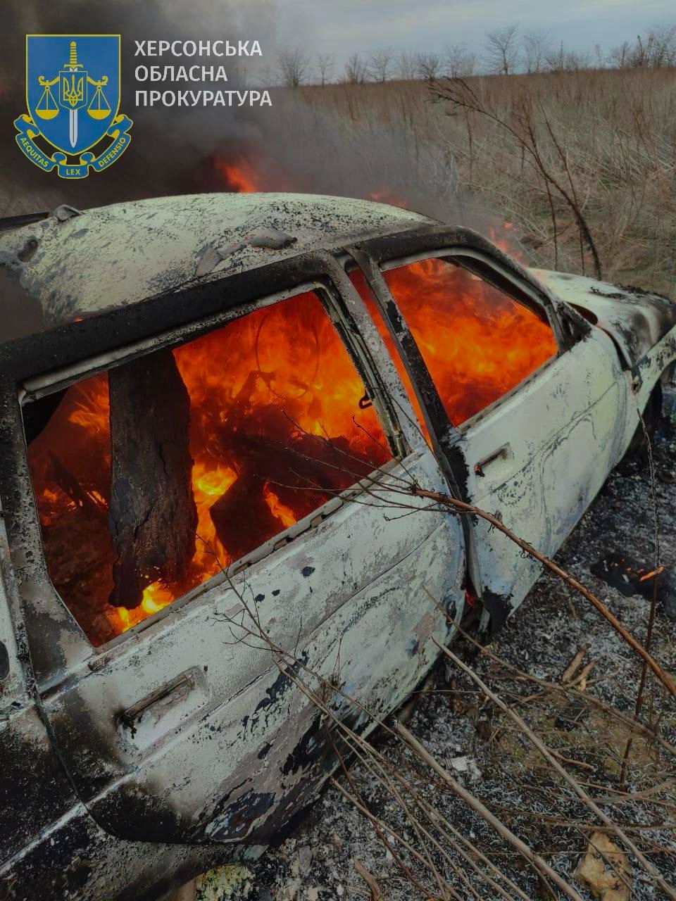 По данным следствия, 8 февраля около 16:00 на автодороге недалеко от города Берислав правоохранители обнаружили горящий автомобиль, внутри которого были тела двух погибших людей. Вероятно в транспорт попал дрон-камикадзе. Остальные подробности происшествия устанавливаются.