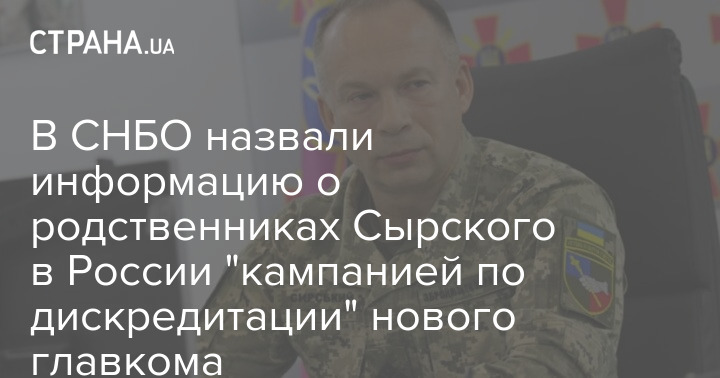 В СНБО назвали информацию о родственниках Сырского в России "кампанией по дискредитации" нового главкома