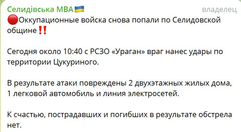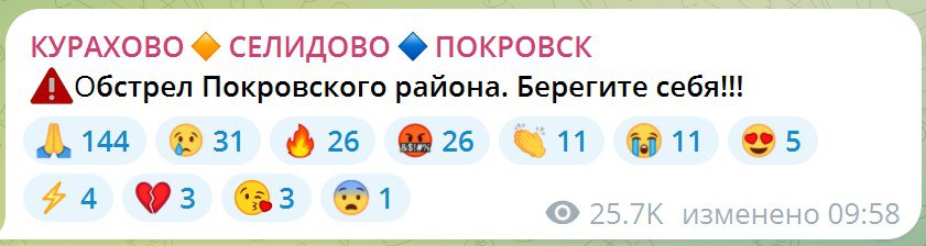 При этом местные телеграм-каналы несколько часов назад сообщили об обстреле Покровского района, куда входит Селидово. А Селидовская военная администрация заявила, что произошел обстрел соседнего с Селидово села Цукурино.