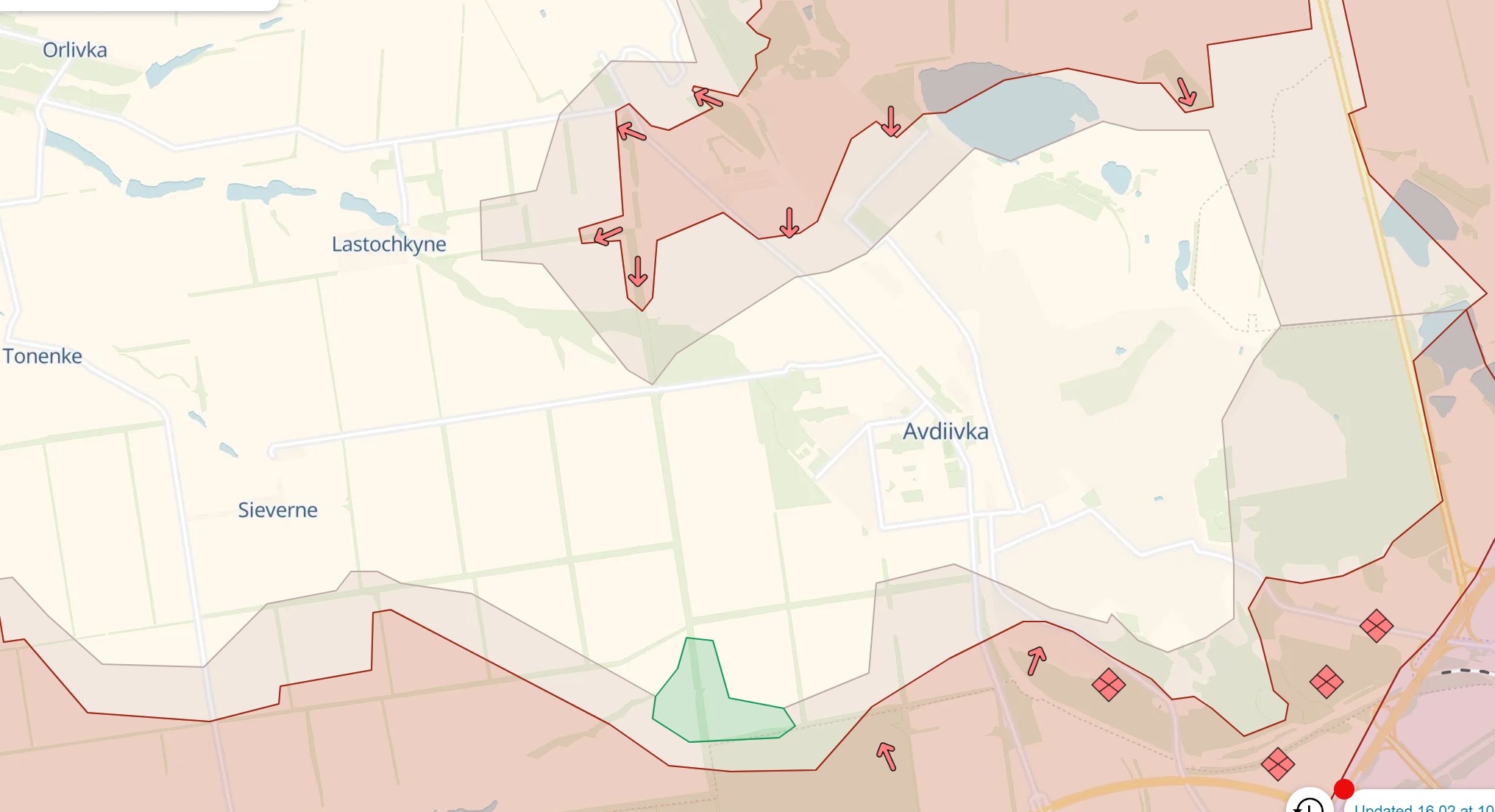 На карте также заметно, что россияне приближаются с севера к еще одной "дороге жизни" - ведущей из Авдеевки на Северное. Если она также будет перерезана, то для снабжения украинского гарнизона останутся только грунтовые дороги.