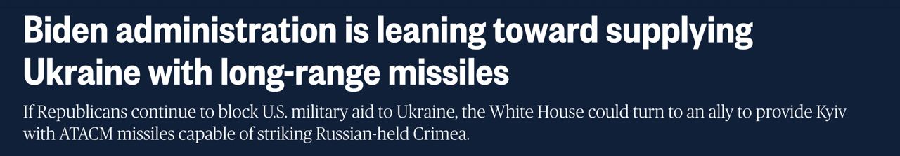 14.50 Администрация Байдена может попросить союзников передать Украине ракеты ATACAMS дальностью более 300 км, сообщает NBC News со ссылкой на источники.
