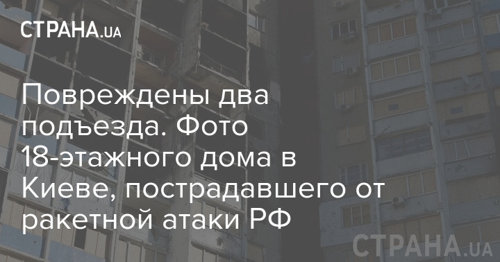 В 18-этажном доме на столичных Теремках, который пострадал во время ракетной атаки 7 февраля, повреждены два подъезда, сейчас в них нет электричества, воды и отопления.