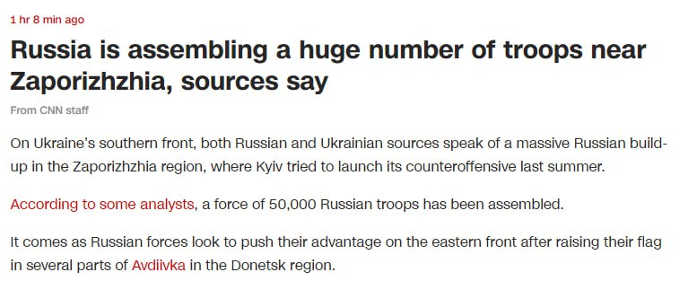 "Это происходит на фоне того, что российские войска стремятся усилить свое преимущество на восточном фронте после поднятия своего флага в Авдеевке", – пишет CNN.