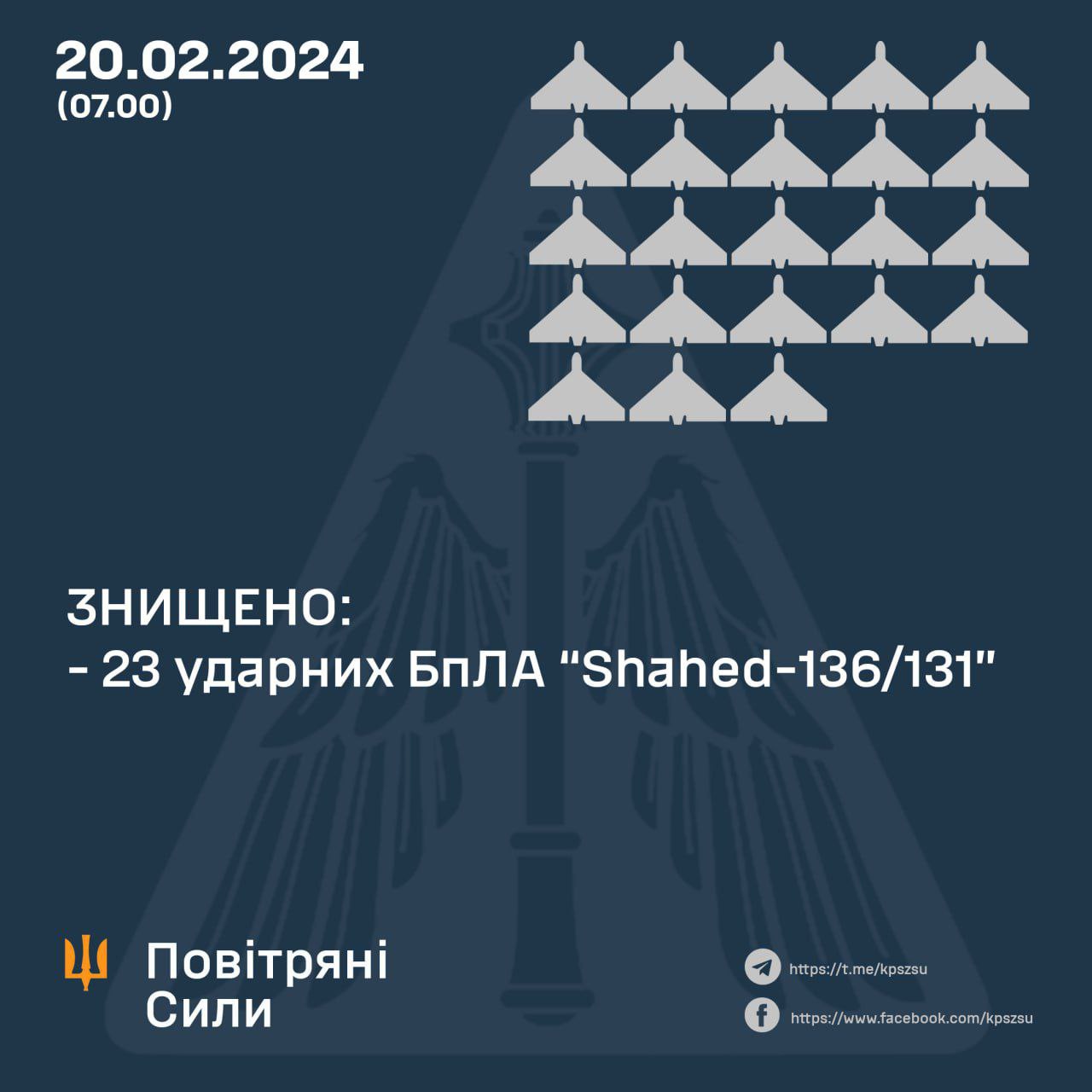 07.47 ВСУ ночью сбили все запущенные по Украине 23 "Шахеда".