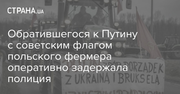 Польская полиция задержала фермера, который вывесил на свой трактор плакат с обращением к Путину и флаг СССР.