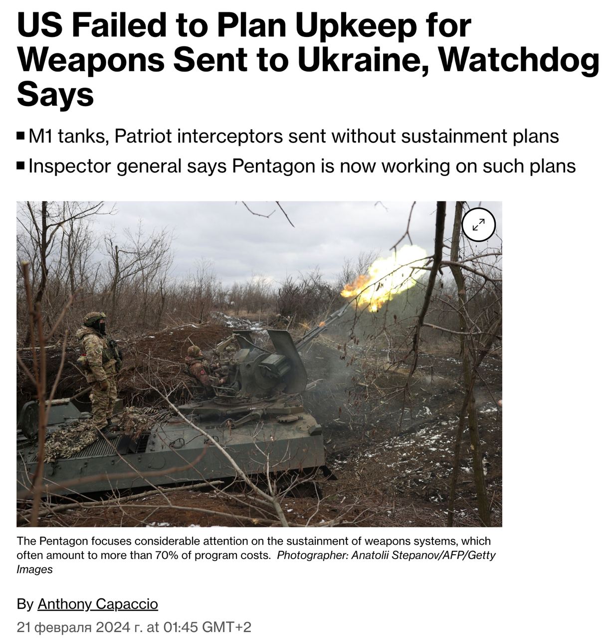 Без запланированной материально-технической поддержки, включая надлежащие запасные части, боеприпасы и техническое обслуживание, "украинцы не смогут поддерживать эти системы вооружения", заключил Сторч.