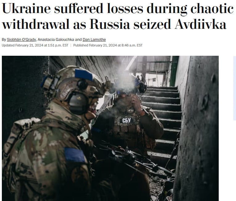 WP цитирует американских чиновников, которые со ссылкой на украинских официальных лиц сообщили, что десятки украинских солдат остались в Авдеевке, когда их подразделения отошли. Один высокопоставленный американский чиновник сообщил, что по меньшей мере 25 украинских солдат были взяты в плен наступающей российской армией. Это число может быть около 100, как украинцы позже признались официальным лицам США.