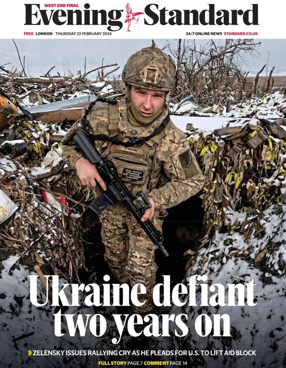 Британская газета Evening Standard на первой странице опубликовала фото бойца ВСУ с украинской надписью на нашивке на груди: "Нет врага страшнее, чем командир долб@б".