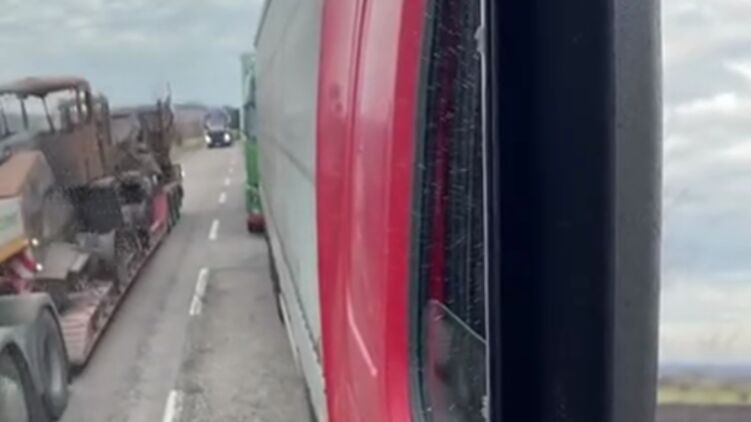 Уничтоженная техника украинских фермеров направляется к границе с Польшей. Скриншот видео