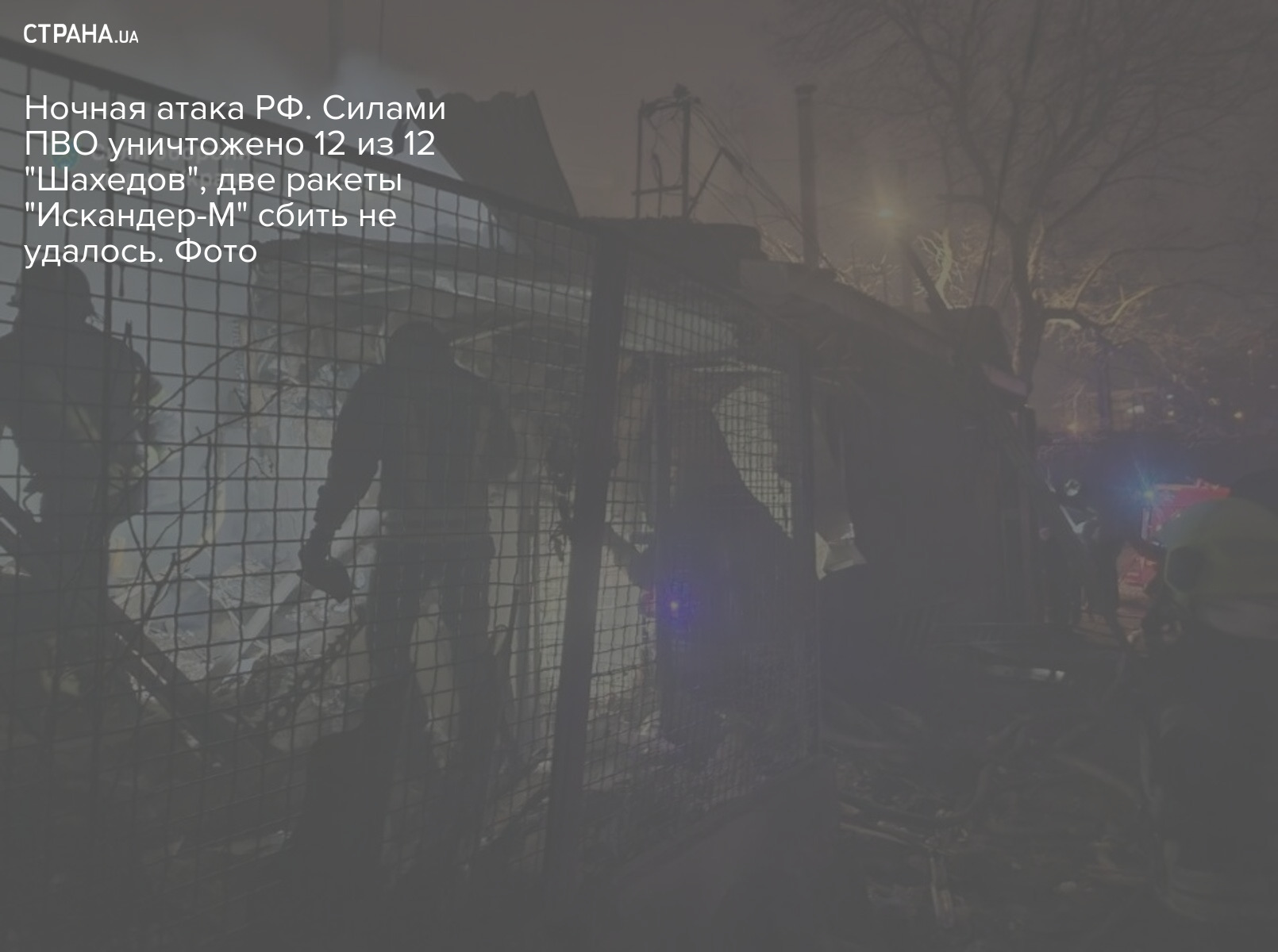 Ночная атака РФ. Силами ПВО уничтожено 12 из 12 "Шахедов", две ракеты "Искандер-М" сбить не удалось. Фото