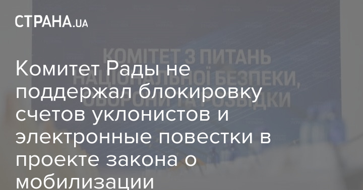 Парламентский комитет нацбезопасности, обороны и разведки сегодня продолжил готовить ко второму чтению законопроект об ужесточении мобилизации. Комитет не поддержал блокировку счетов уклонистов и электронные повестки.